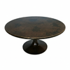 The Valmont Coffee Table is a sophisticated statement piece that fuses modern form with an antique patina. The expansive, circular tabletop features a unique, hand-applied copper bronze finish, showcasing a rich, mottled texture that adds exceptional depth and warmth to your space.