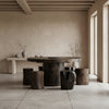 The Zimbabwe Dining Table is a true statement of craftsmanship and natural beauty. Hand-carved from solid munggur wood, its sculptural base and substantial top highlight the timber’s organic grain, rich texture, and natural variations. Finished in a finely sanded natural tone, the table embodies strength and authenticity, where subtle bowing and unevenness are embraced as marks of its character.