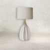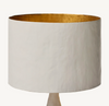 Illuminate your space with understated elegance and artisanal craftsmanship. This handcrafted lamp features a frosted snow-white polyresin base paired with a matching shade, both finished with a luminous gold leaf interior that radiates warmth and luxury.